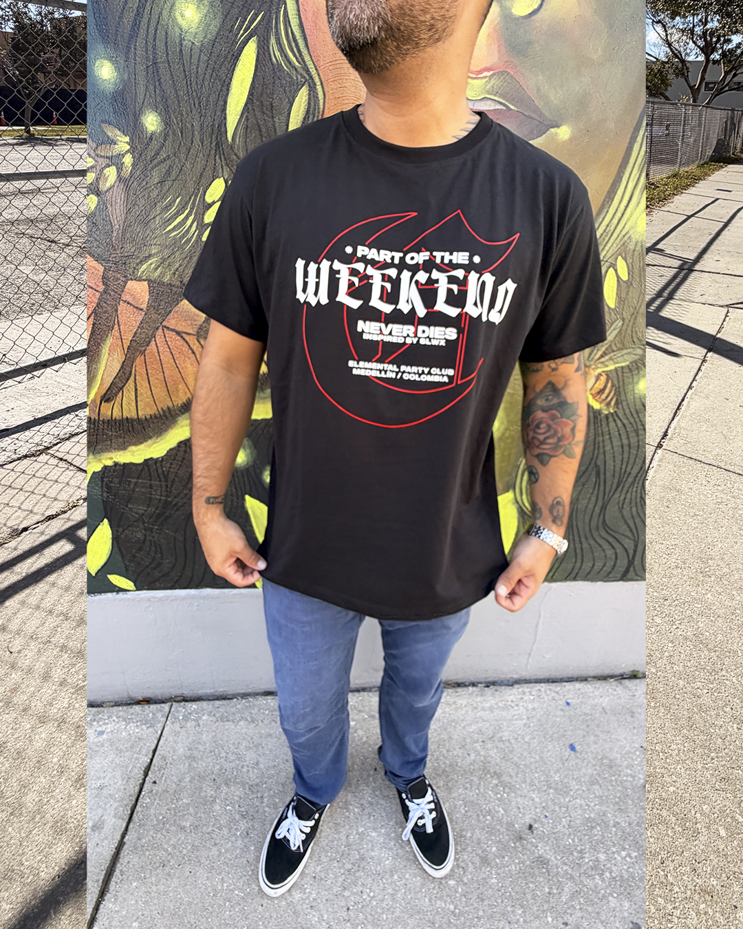 ☰ Descripción: Camiseta unisex silueta semi oversize, cuello redondo en rib algodón, manga corta. Estampado frontal en serigrafía.