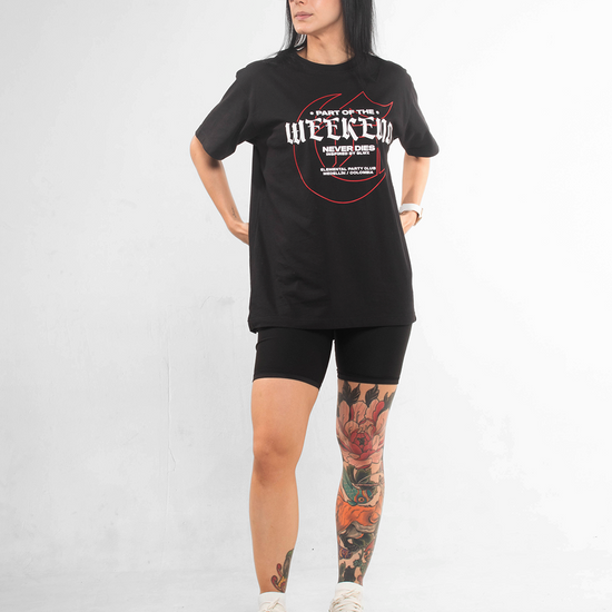 ☰ Descripción: Camiseta unisex silueta semi oversized, cuello redondo en rib algodón, manga corta. Estampado frontal en serigrafía.