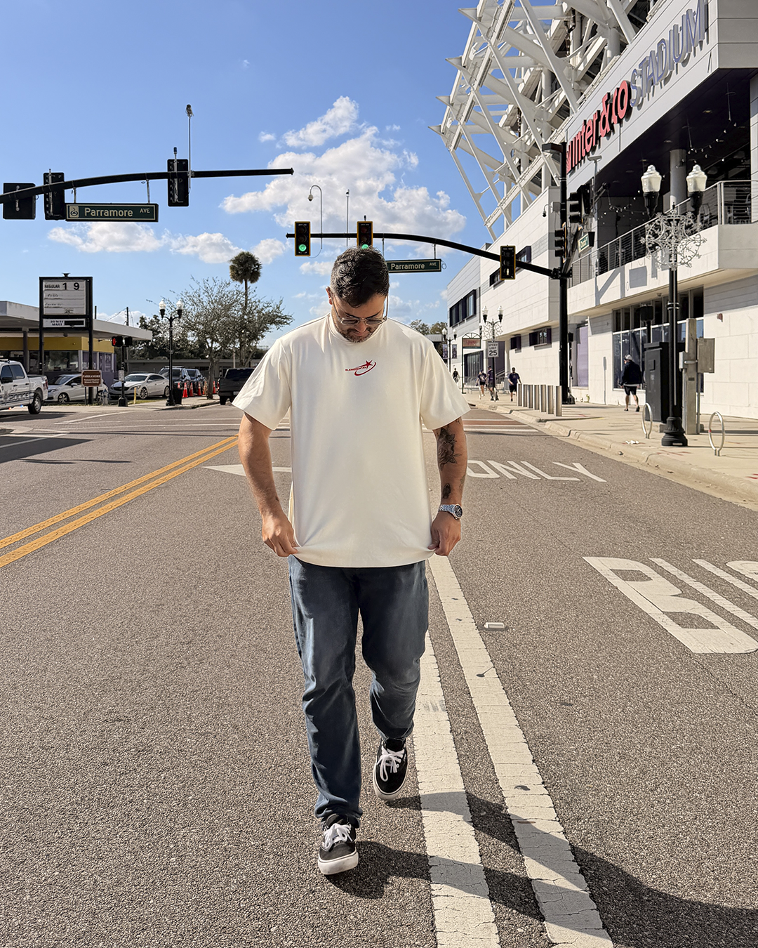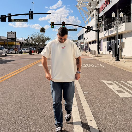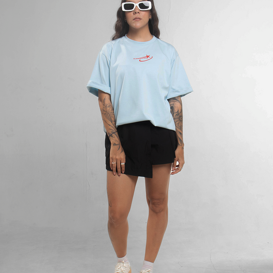 ☰ Descripción: Camiseta unisex silueta semi oversized, cuello redondo,manga corta. Estampado posterior y frontal en serigrafía.