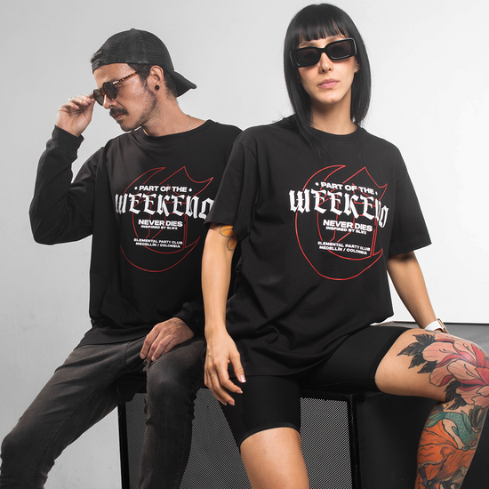 ☰ Descripción: Camiseta unisex silueta semi oversized, cuello redondo en rib algodón, manga corta. Estampado frontal en serigrafía.